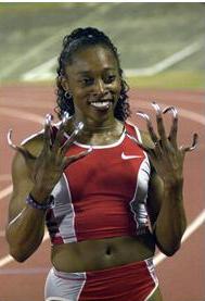Why Gail Devers you ask?…I am a Jamaican after all, I should innately despise all American athletes… Well I did, I do, I’m not too sure… I know that I do in fact despise ALL non-Jamaican athletes at all major championships 🙂 I have tunnel vision when watching and the only event I relax with are the ones with no Jamaicans in it… It’s a lot I know but Jamaicans are passionate about athletics and our athletes… I remember back in the 90s when she was on top of her game, I didn’t know her name, but I remember being very upset when she would win every race over Merlene Ottey, I remember thinking who the heck is this chick with her monster nails, can’t she trip or something, Merlene needs a Gold medal! :)… ok, let’s go back to Gail… I first heard about Gail Devers when I was watching TV one boring Saturday evening, and a Lifetime movie came on, “The Gail Devers Story” it depicted her life, her struggles and accomplishments. The movie was about her being on top of her game and suddenly being diagnosed with Graves disease, a thyroid disorder. I remember watching the movie and feeling very emotional, inspired, and motivated. She almost lost her legs, she struggled, everyone gave up on her, but she never gave up on herself that takes guts, strength, conviction and an unwavering belief in herself and her abilities. That was about 10 years ago,… I never forgot.