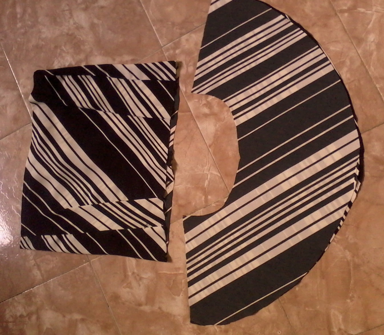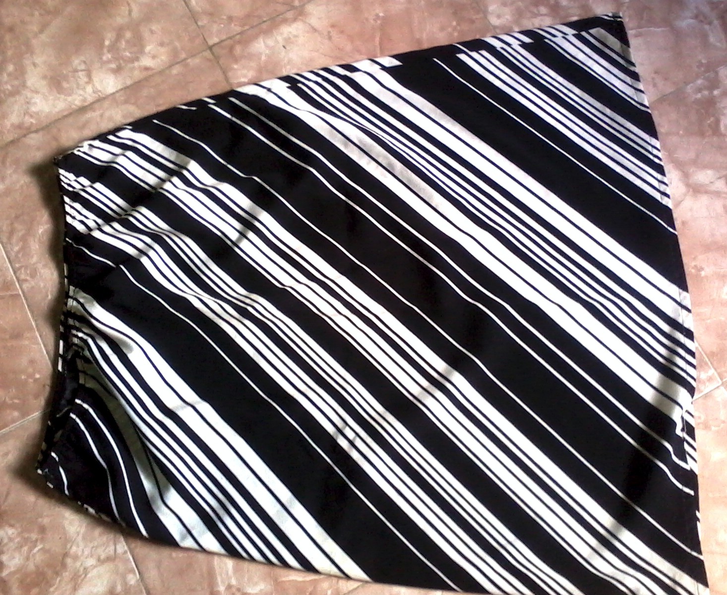 Select a skirt that is at least 1 ½ times the size of your breast. The skirt you choose must also be long enough to make the frilly peplum ends. The skirt fabric should be one that would not unravel when cut. I chose polyester – cotton blend fabric.